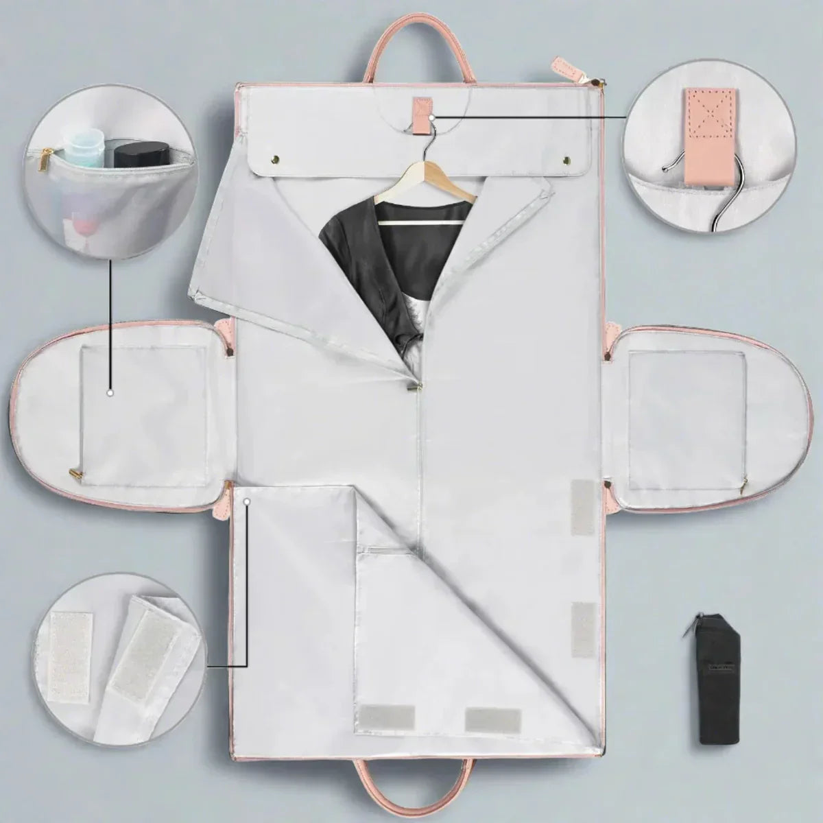 Simply unzip the bag and unfold it! Comes with a built in hanger to keep your clothes wrinkle-free.